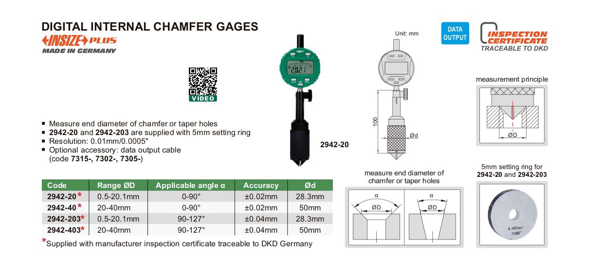 INSIZE 2942-403 Digital Internal Chamfer Gage (20-40mm) | EMIN.CO.ID