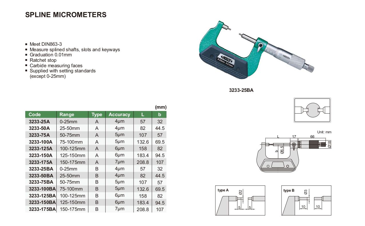 INSIZE 3233-175A Spline Micrometer (150-175mm) | EMIN.CO.ID