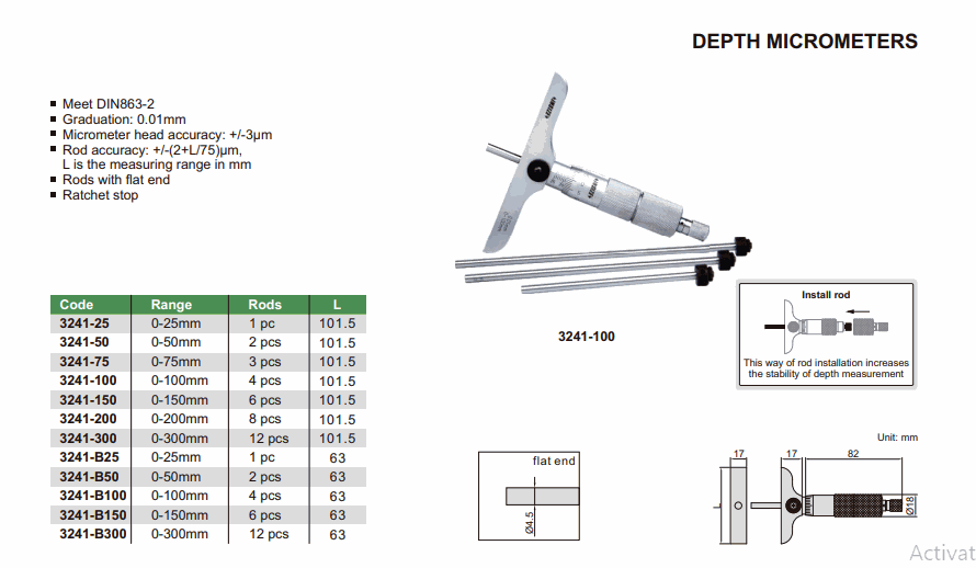 INSIZE 3241-B50 Depth Micrometer (0-50mm; 0.01mm) | EMIN.CO.ID