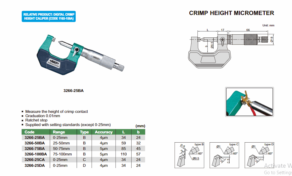 INSIZE 3266-25BA Crimp Height Micrometer (0-25mm; 0.01mm) | EMIN.CO.ID