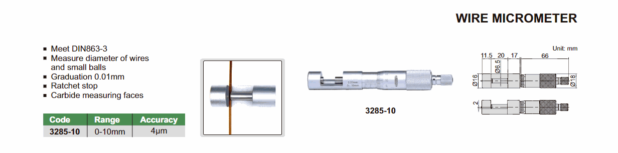 INSIZE 3285-10 Wire Micrometer (0-10mm; 0.01mm) | EMIN.CO.ID