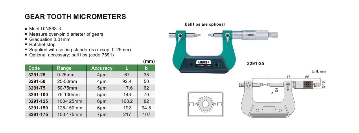 INSIZE 3291-25 Gear Tooth Micrometer (0-25mm) | EMIN.CO.ID