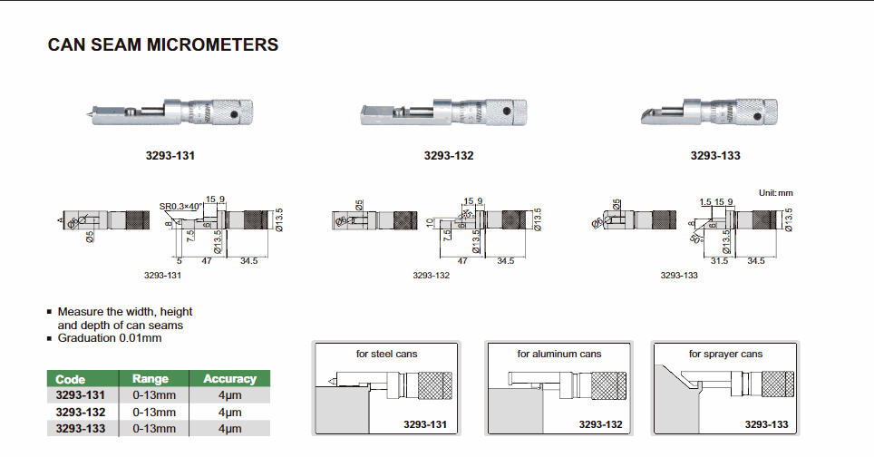 INSIZE 3293-133 Can Seam Micrometer (0-13mm; 0.01mm) | EMIN.CO.ID