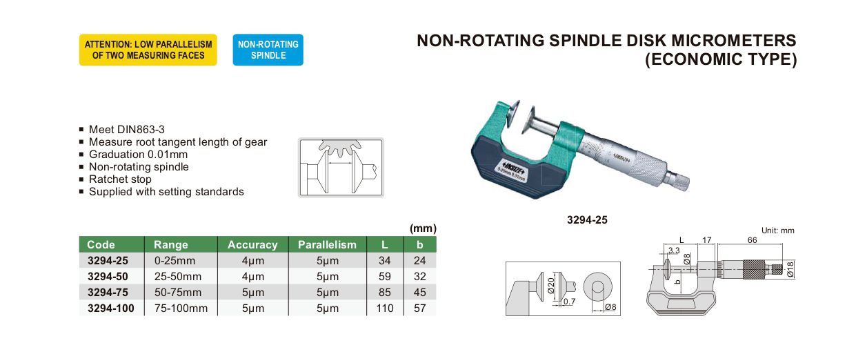 INSIZE 3294-50 Non-Rotating Spindle Disk Micrometer (25-50mm) | EMIN.CO.ID
