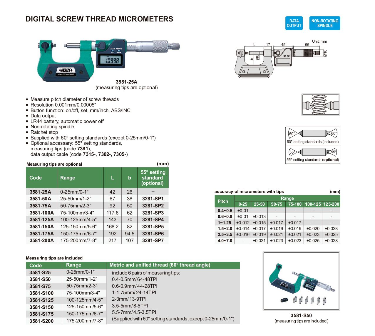 INSIZE 3581-25A Digital Screw Thread Micrometer (0-25mm/0-1") | EMIN.CO.ID