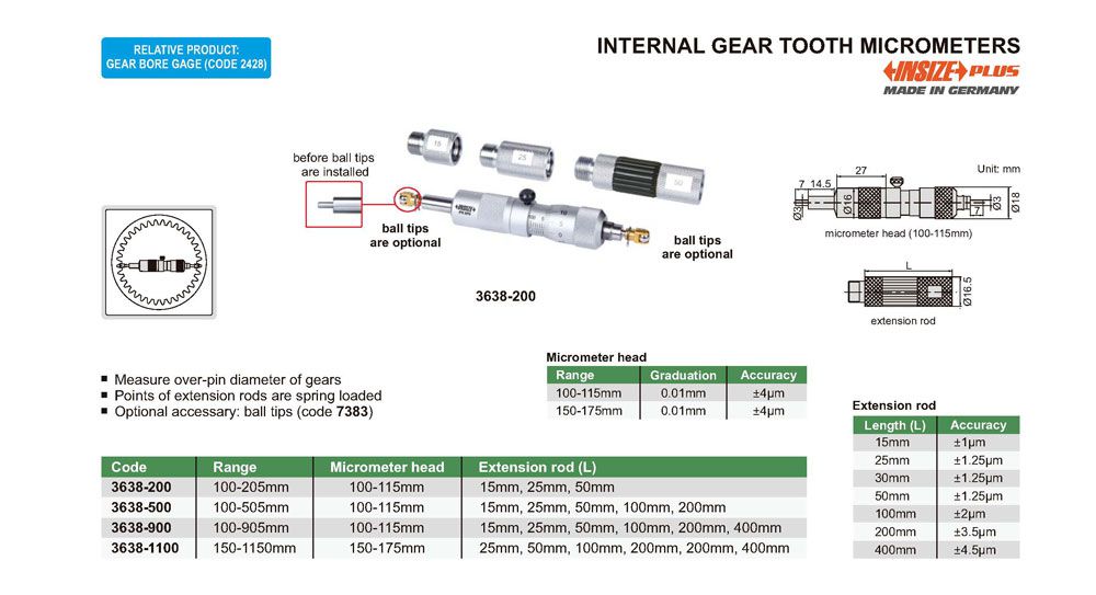 INSIZE 3638-500 Internal Gear Tooth Micrometer (100-505mm) | EMIN.CO.ID