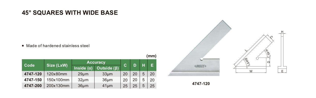 INSIZE 4747-120 45° Square With Wide Base (45°; 120x80mm) | EMIN.CO.ID