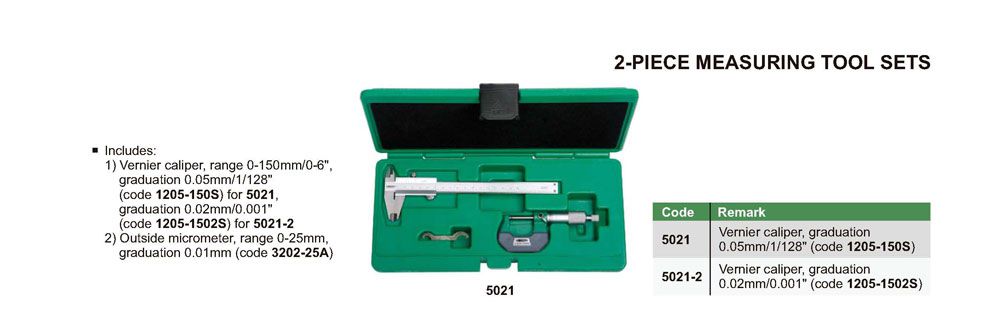 INSIZE 5021-2 2- Piece Measuring Tool Set (0-150mm/0-6", 0-25mm, 0.02mm/0.001") | EMIN.CO.ID