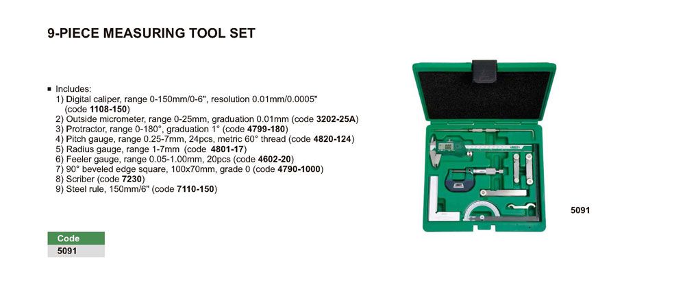 INSIZE 5091 9- Piece Measuring Tool Set | EMIN.CO.ID