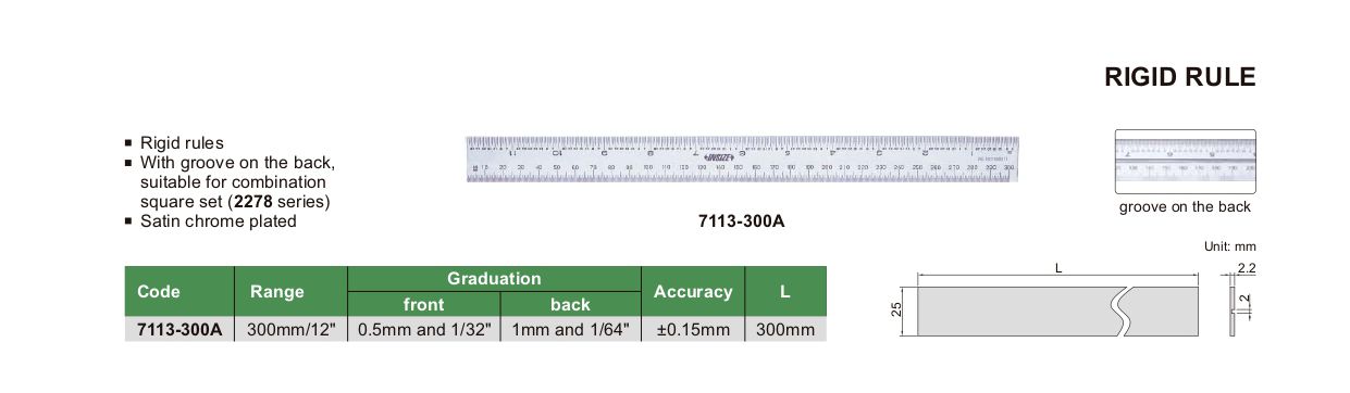 INSIZE 7113-300A Rigid Rule (300mm/12") | EMIN.CO.ID