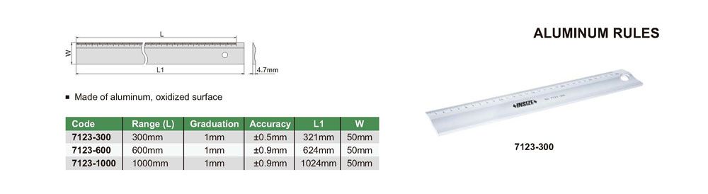 INSIZE 7123-300 Aluminum Rule (0-300mm; 1mm) | EMIN.CO.ID