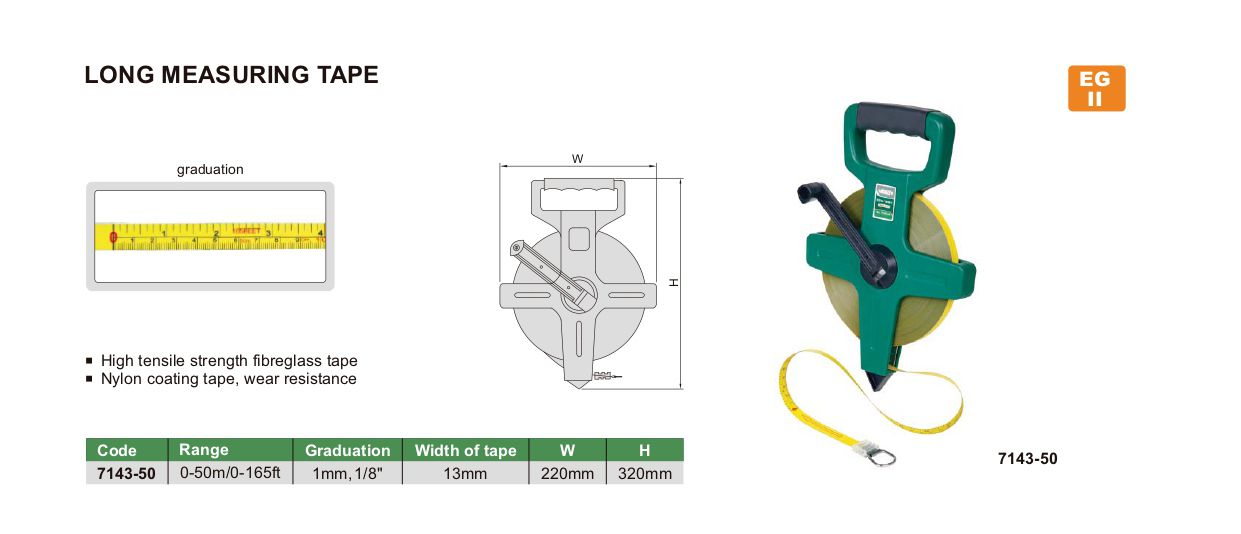 INSIZE 7143-50 Long Measuring Tape (0-5m/0-165ft) | EMIN.CO.ID