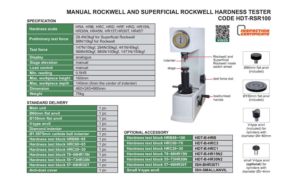 INSIZE HDT-RSR100 Manual Rockwell And Superficial Rockwell Hardness Tester (1417N) | EMIN.CO.ID