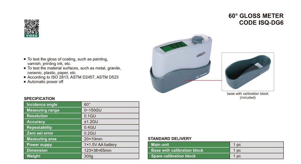 INSIZE ISQ-DG6 60° Gloss Meter (0~150GU; ±1.2GU) | EMIN.CO.ID