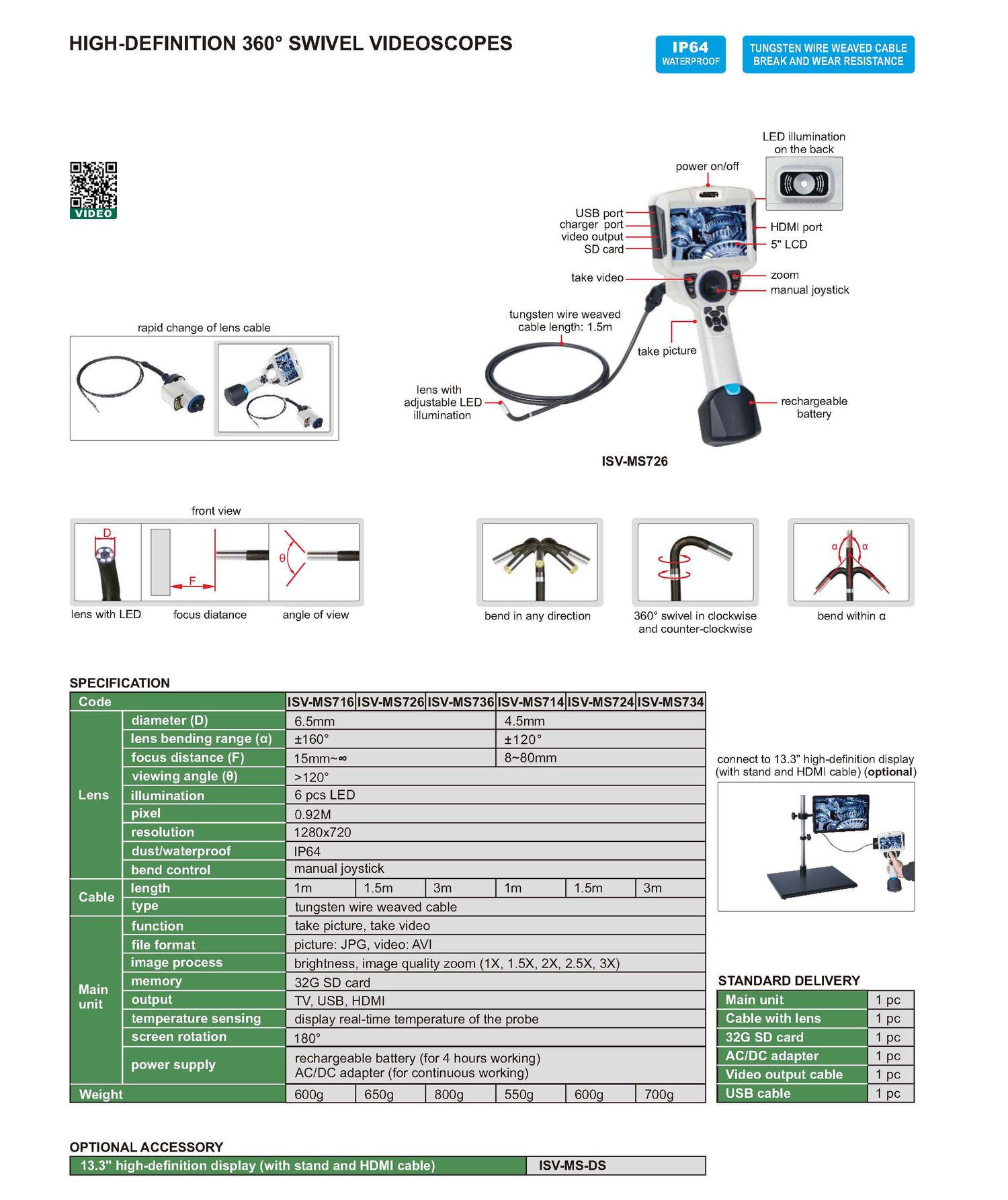 - 13.3” high-definition display (with HDMI cable): ISV-MS-DS