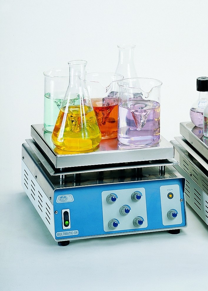 External plate made from AISI 304 stainless steel with engraved stirrer positions. Independent stirring speed control for each position.