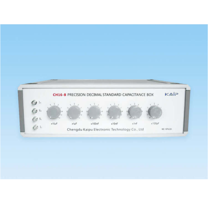 CH16-B precision decade large-capacitance box is a standard capacitance measuring instrument designed for measurement institutes, research institutes, production measurement and laboratories. The capacitance range is from 100pF to 111.1110μF with a minimum step of 100pF and zero-switch capacitance less than 0.00005pF. The capacitance box has six-digit decade readings.
