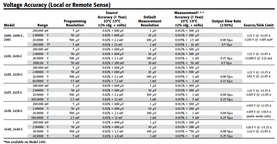 GUARD OFFSET VOLTAGE: <150µV, typical (300µV for Models 2430, 2440).
