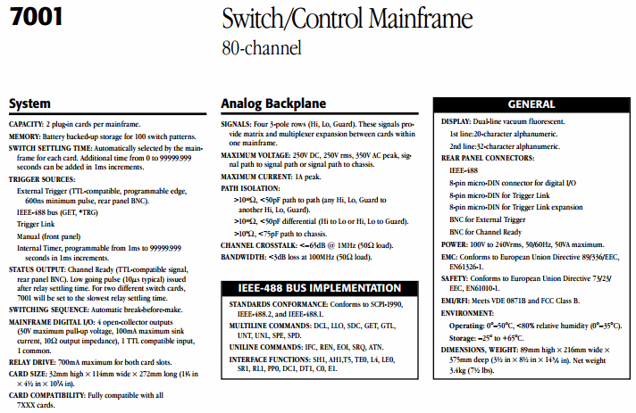 KEITHLEY 7001 Switch/Control Mainframe | EMIN.CO.ID