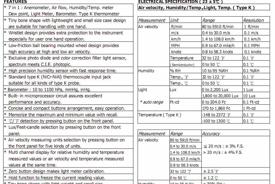 LUTRON LM9000 Anemometer, Air flow, Humidity/Temp., Dew point ,Light, Barometer, type K Temp | EMIN.CO.ID