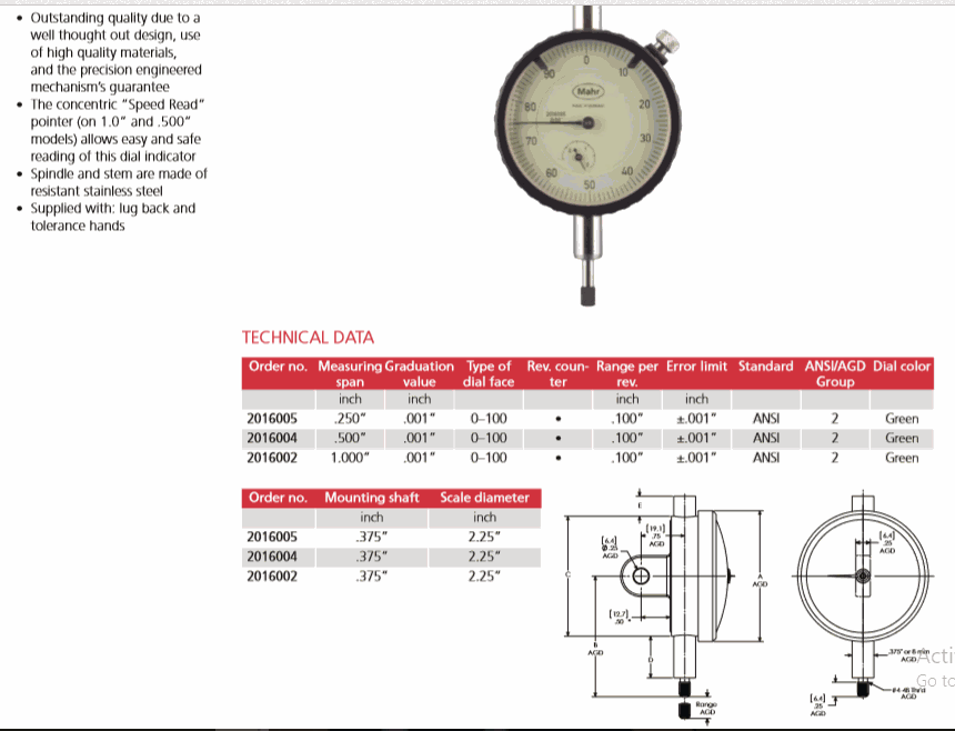 Mahr 2016005 Dial Indicator (.250”) | EMIN.CO.ID