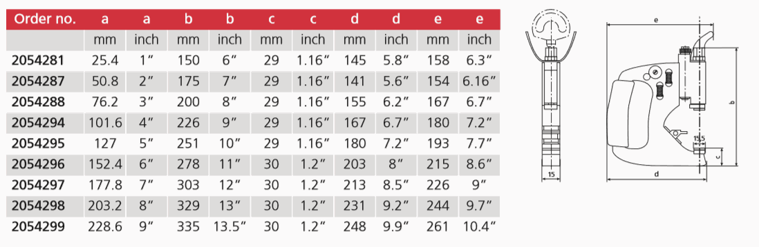 • Patented “Channel Lock” design assures precise parallel anvil surfaces throughout the full 25 mm / 1“ range of adjustment
