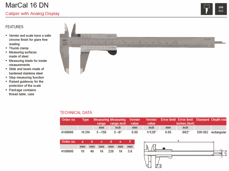 Mahr 4100600 Caliper With Analog Display (16DN, 0-150mm) | EMIN.CO.ID