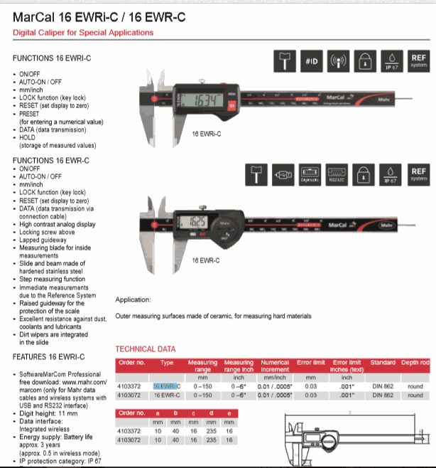 Mahr 4103072 Digital Caliper for Special Applications (16 EWR-C,0-150mm) | EMIN.CO.ID