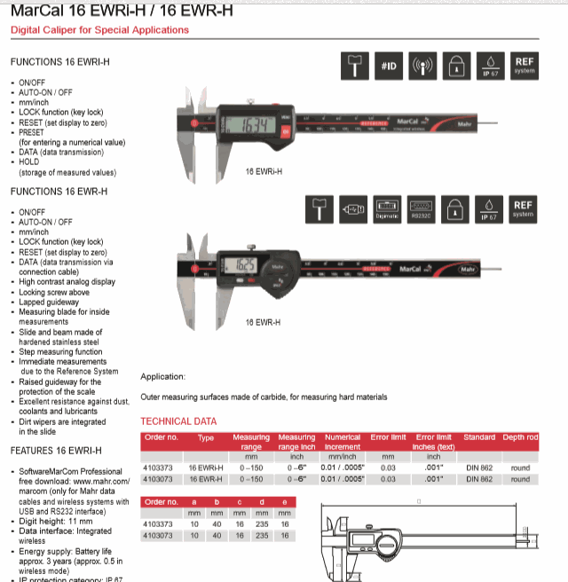 Mahr 4103073 Digital Caliper for Special Applications (16 EWR-H,0-150mm) | EMIN.CO.ID