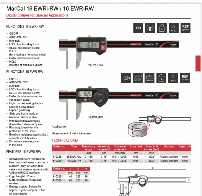 Mahr 4103081 Digital Caliper for Special Applications (16 EWR-RW, 0-150mm) | EMIN.CO.ID