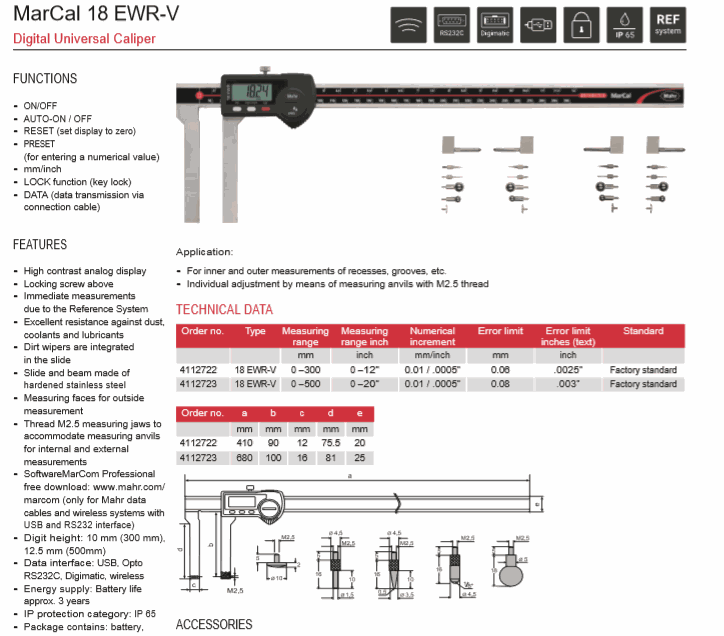 Numerical increment: 0.01mm/.0005”