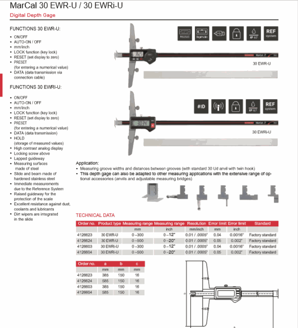 Mahr 4126623 Digital Depth Gage (30 EWR-U, 0-300mm/0-12") | EMIN.CO.ID