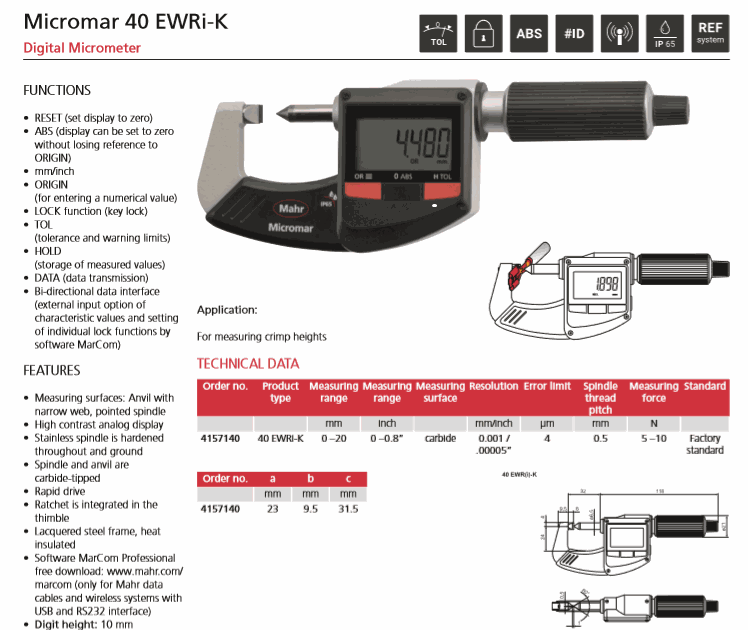 Mahr 4157140 Digital Micrometer (40 EWRi-K, 0-20mm/0-0.8") | EMIN.CO.ID