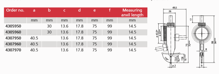 Package contains: case, instruction manual, spanner for changing the styli, stylus dia. ø 2 mm, mounting shaft 800a3/8