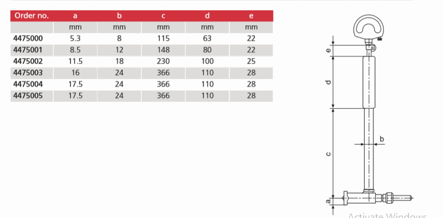 Measuring depth extension (250 mm) for measuring range 35 – 100 mm, type 844 Nv