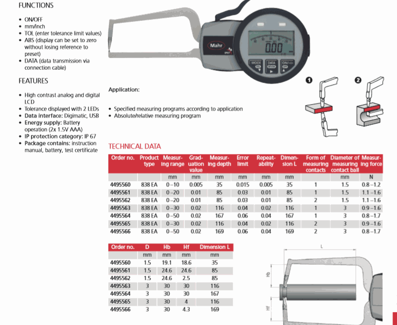 Mahr 4495563 Electronic Gage for External Measurement (838 EA, 0 – 30mm, 0.02mm) | EMIN.CO.ID
