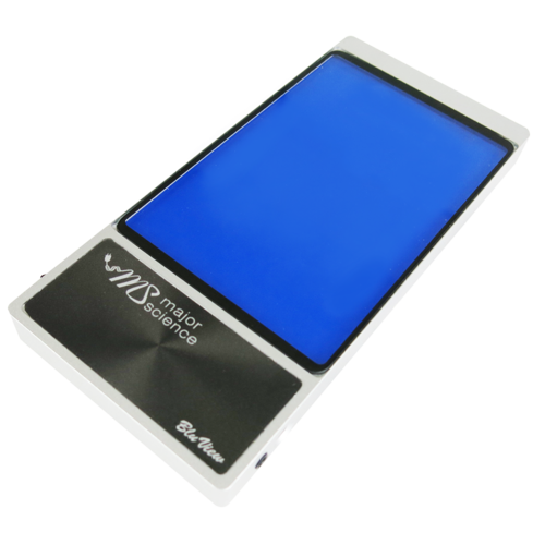 Major Science BluView Transilluminator uses the harmless blue LED instead of aggressive UV lights, and allows you to directly view the experiment result without wearing any UV protection equipment. With its compact size and light weight, the transilluminator occupies little of your lab bench and is easy to be moved from lab to lab.
