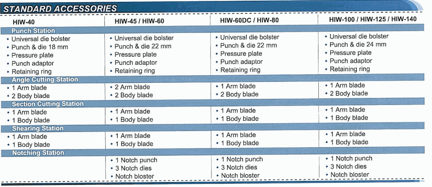 - Max. Section flange punch: 102mm
