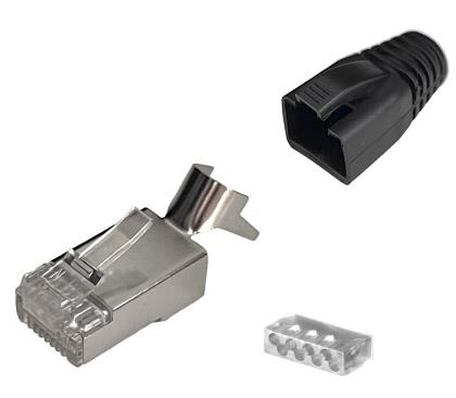 MH Connectors MHRJC6AR3721 Connectors 8P8C Cat6a shielded mod plug, 1.1mm wire, 8.0mm boot, 50u" Plating | EMIN.CO.ID