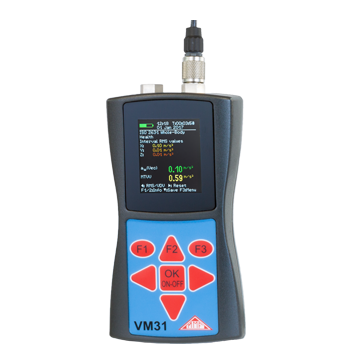 Standard accessories: VM31, triaxial accelerometer KS903B100, sensor cable 3 m, magnetic base 308, sensor probe 001, USB cable, batteries, instruction manual