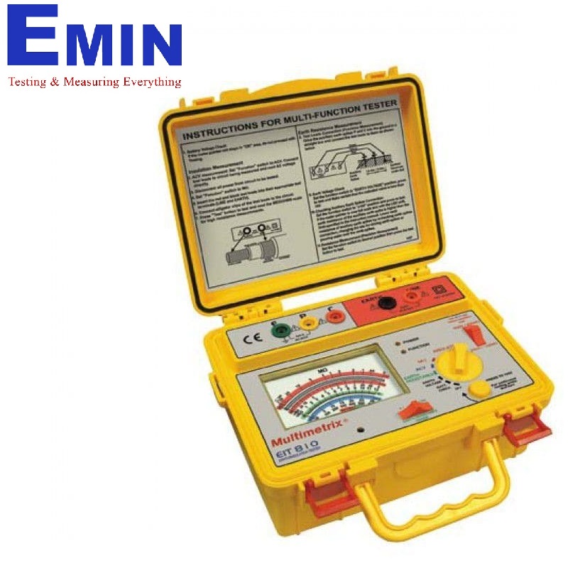- Supplied in a hard case with 3 leads terminated by crocodile clips (red 15 m, yellow 10 m and green 5 m), 1 red lead 1.20 m long terminated by a crocodile clip,2 x 20 cm stakes, 2 leads 80 cm long (red + black) terminated by crocodile clips and 8 x 1.5 V batteries