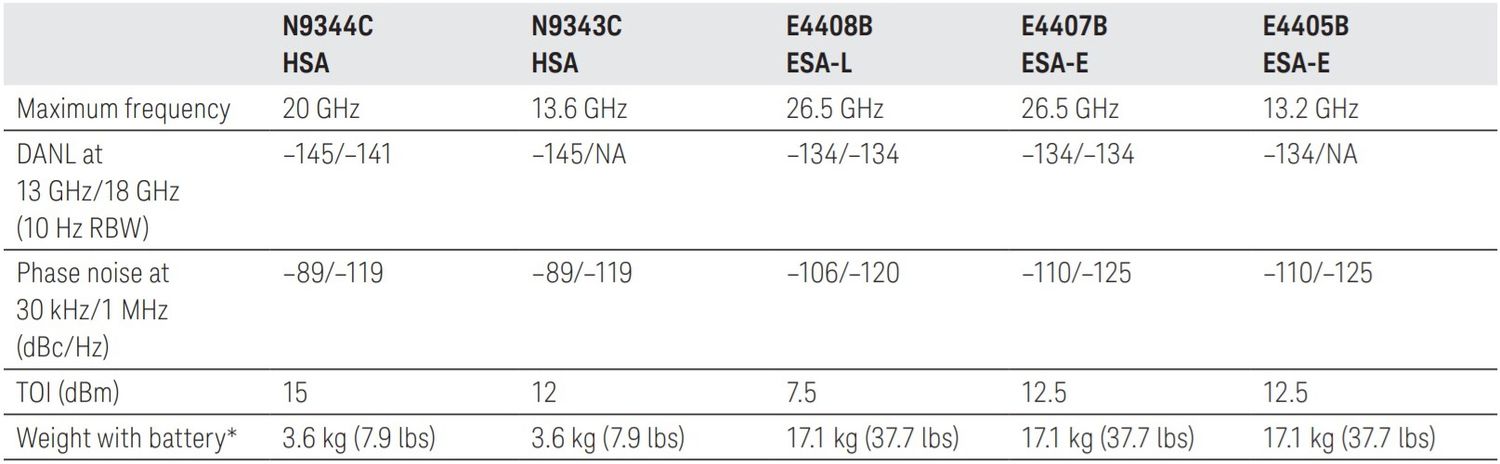 Performance comparison of microwave ESA models to handheld spectrum analyzers