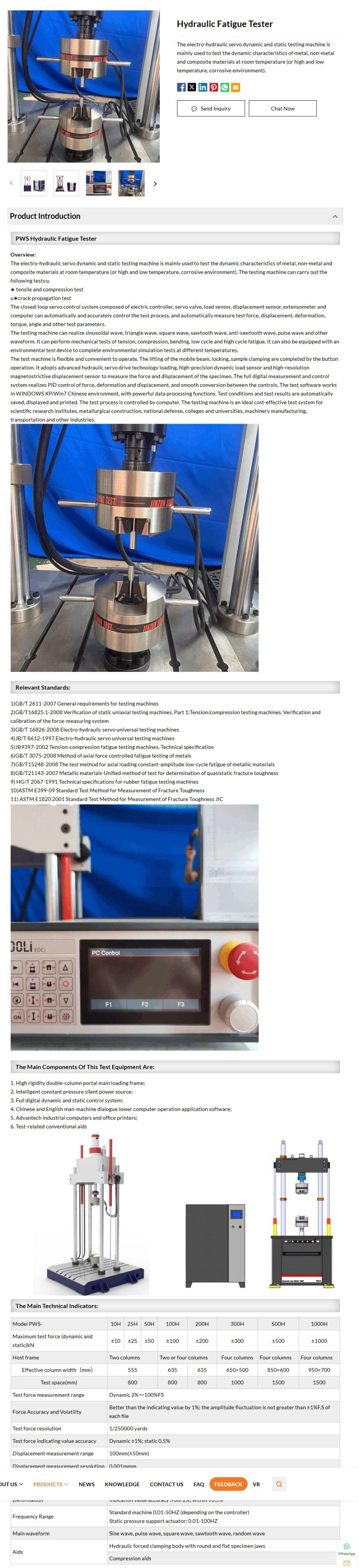 Test force measurement range: Dynamic 2%~100%FS