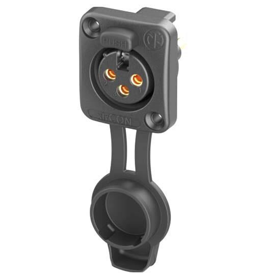 NEUTRIK NC3FDXX-TOP Connectors RECP airtight series 3 pole female - solder - black/gold, front mount, with cap | EMIN.CO.ID