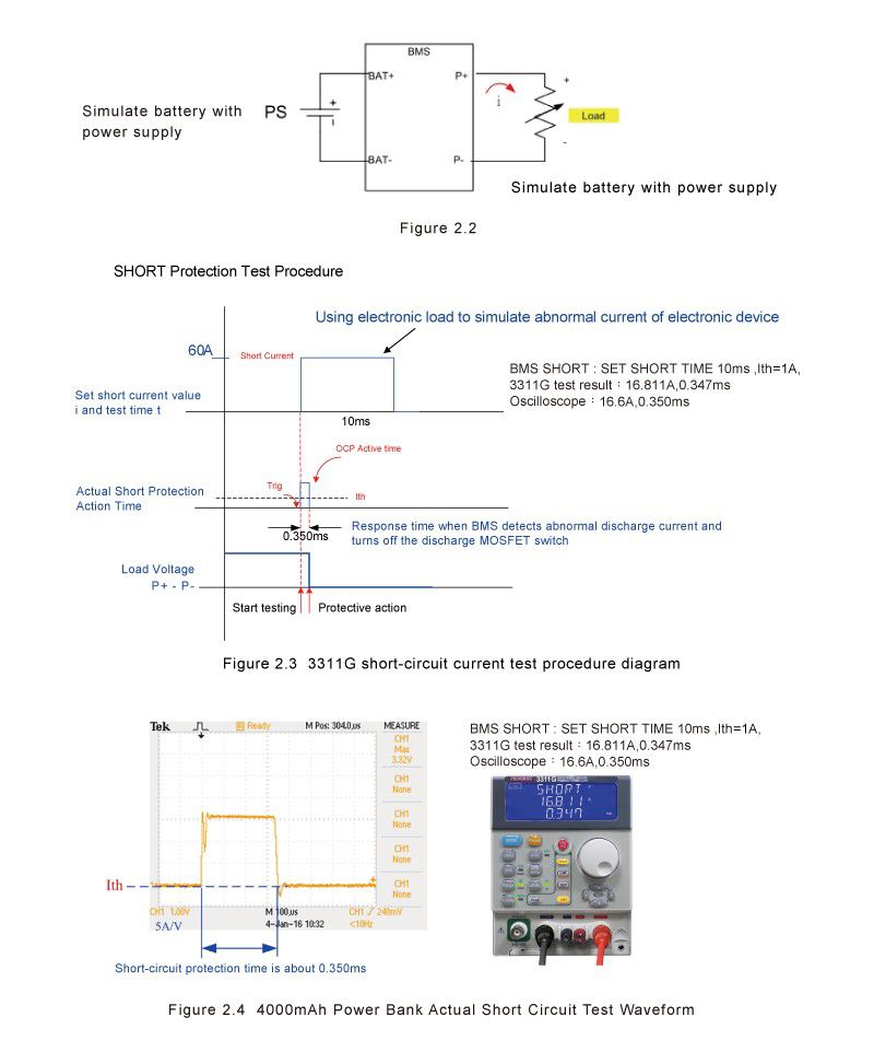 2.1 BMS short circuit, overcharge current, over discharge current protection principle.