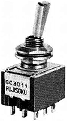 Nidec Components 8C3011-Z High-Reliability Miniature Toggle Switch 3PDT, ON-ON, 11.4mm flatted toggle, 1/4"-40 threaded bushing, solder lug terminals, 6A @ 125V AC