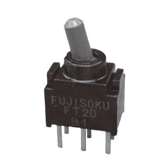 Nidec Components CFT2-1GC6-AW Ultra-Miniature Toggle Switch SPDT, (ON)-OFF-(ON), 3.8mm toggle, vertical PC terminals, 0.4VA @ 25V DC | EMIN.CO.ID