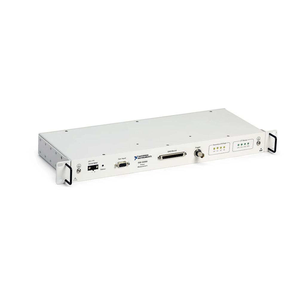 The Power Measurements Conditioner provides voltage and current signal conditioning for a supported data acquisition module or device to make up to four simultaneous power measurements per conditioner. It also includes attenuation for voltage channels up to 2,000 V and has power, communication, and signal lines for current measurements from current transducers.