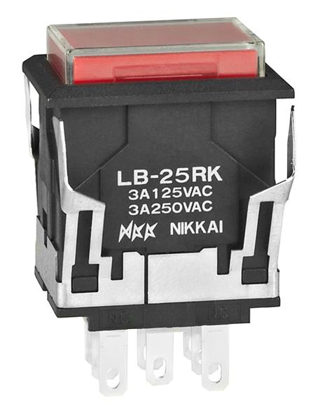 NKK Switches LB25RKW01-5C12-JC Pushbutton Switches ON(ON) RECT BLK 12V RED LED CLR/RED CAP | EMIN.CO.ID