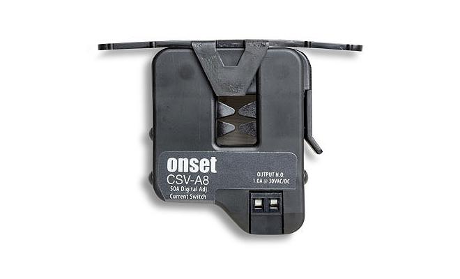 Measures equipment runtime (time-of-use). This UL-listed sensor has built-in on/off status lights and provides an adjustable current threshold of 0.5 to 175 amps. Simply install the sensor around a current-carrying wire to the equipment to be monitored and then connect the sensor to a compatible HOBO UX90 or UX120-017 data logger.